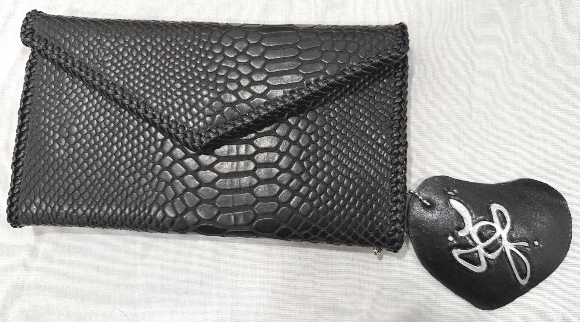 Black Snake Leather “Jef Treasures Letter Series” Clutch with Breast Cancer Awareness